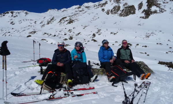 Après une première rencontre à Chailly à 7h00, les 6 participants se sont retrouvés à Bourg-Saint-Bernard pour partir à 8h15 vers le Col du Bastillon. Le début était encore à l’ombre mais on est arrivé assez vite au soleil pour enlever les vestes. En bas, la neige était légèrement croûtée mais en haut, nous avons trouvé une bonne neige poudreuse.